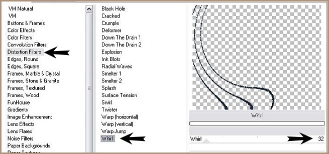 10 - Calques/NOUVEAU CALQUE 11 - Sélection/Charger/Enregistrer une sélection/charger à partir du disque/Charger la sélection Yokapearls 2 Remplir de couleur #172634 12 - Sélection/Désélectionner 13 - Effets/Unlimited/Distortion filters/Whirl avec les réglages ci-dessous :