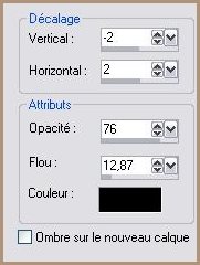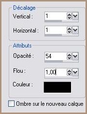 Edition/Copier/ Edition/Coller comme nouveau calque Placer sur le côté droit 19 - Effets/Effets 3D/Ombre Portée :