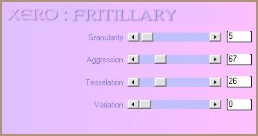26 - Garder sélectionné 27 - Effets/Xero/Fritillary avec les réglages ci-dessous :