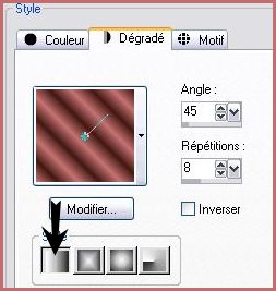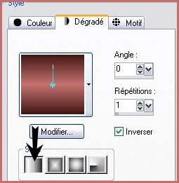 *** 1 - Ouvrir une image de 600 x 350 pixels Placer en avant-plan la couleur #C47170 et en arrière-plan la couleur #421813 Configurer un dégradé linéaire angle: 0°/Répétition: 1