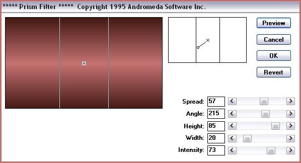 2 - Calques/NOUVEAU CALQUE Remplir votre image de ce dégradé 3 - Effets/Andromeda/Prism Filter