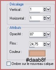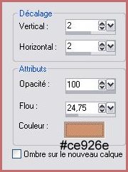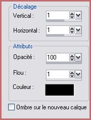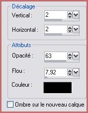 18 - Edition/Copier/ Edition/Coller comme nouveau calque Placer sur le droite 19 - Effets/Effets 3D/Ombre Portée :