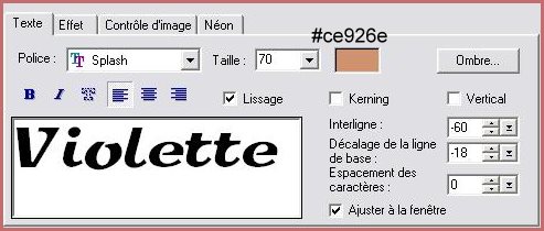 32 - Choisir une police : ici Splash/Taille: 70 et écrire votre texte: