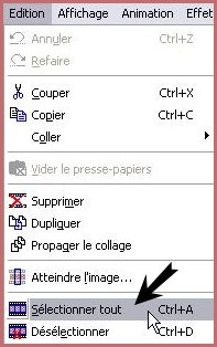 37 - Enregistrer en gif 38 - Ouvrir AnimationShop 39 - Ouvrir votre fichier "gif" enregistré 40 - Votre animation est lourde et composée de 29 images. Nous allons l'alléger 41 - Edition/Sélectionner tout