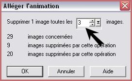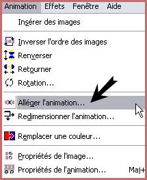 44 - Edition/sélectionner ToutAnimation/Propriétés de l'image/Durée de l'affichage : 20/25 45 - Affichage/Animation pour contrôler si l'animation vous convient 46 - Affichage/Animation pour la stopper 47 - Fichier/Assistant d'Optimisation 48 - Fichier/Enregistrer en fichier gif