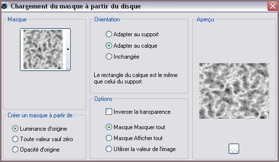 4 - Réglages/Flou/Flou gaussien : rayon : 12 5 - Calques/Charger/Enregistrer un masque/Charger à partir du disque/Choisir le masque ww.-texturemask1
