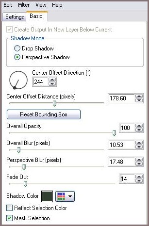 38 - Répéter l'ombre portée précédente 39 - Calques/Fusionner le calque du dessous 40 - Effets/Alien Skin Eye Candy Impact/ Perspective Shadow avec ces réglages: