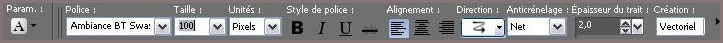 62 - Activer l'outil Texte/Police Ambiance BT/Taille: 100/taille du trait: 2/ Vectoriel :