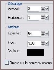 Ecrire votre nom 63 - Clic droit /Convertir en calque raster 64 - Effets/Effets 3D/Ombre Portée :