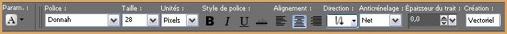 65 - Edition/Copier 66 - Edition/Coller comme nouveau calque sur notre travail mis de côté 67 - Activer l'outil Texte/Police Donnah /Taille: 28/ Vectoriel /direction : vertical et vers la droite:
