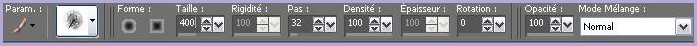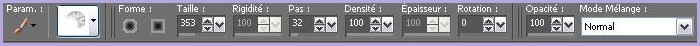16 - Remplir votre image 17 - Calques/NOUVEAU CALQUE 18 - Placer en avant-plan la couleur #3b3944 19 - Activer l'outil pinceau et rechercher le pinceau Yoka-Pluisbloem2 configuré ainsi: