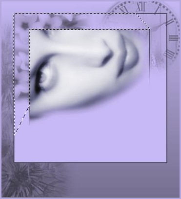 26 - Placer en avant-plan la couleur #c7b9f5 Remplir la sélection 27 - Sélection/modifier/Contracter de 2 pixels 28 - Sélection/Inverser 29 - Sélection/Flottante/ Remplir de couleur #37353f 30 - Sélections/Désélectionner Nous avons ceci: