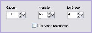 68 - Image/Ajouter des bordures : 2 pixels couleur #37353f 69 - Image/Redimensionner à 85 % 70 - Réglages/Netteté/Masque flou :