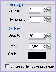 71 - Edition/Copier 72 - Edition/Coller comme nouveau calque sur votre image de 600 x 640 pixels 73 - Effets/Effets 3D/Ombre Portée :