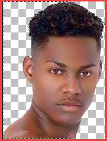 35 - Calques/NOUVEAU CALQUE 36 - sélectionner la moitié droite du visage 37 - Edition/Copier 38 - Edition/Coller dans la sélection 39 - Sélection/Désélectionner 40 - Calques/NOUVEAU CALQUE 41 - Sélection/Charger/Enregistrer une sélection/charger à partir du disque/Charger la sélection Yoka-LesBoxedDot-sel5