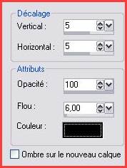 Remplir la sélection 20 - Garder sélectionné 21 - Calques/NOUVEAU CALQUE 22 - Activer le tube Yoka_JdL_PortraitHalleBerry16-10-0523 - Edition/Copier 24 - Edition/Coller dans la sélection 25 - Sélection/Désélectionner 26 - Effets/Effets 3D/Ombre Portée