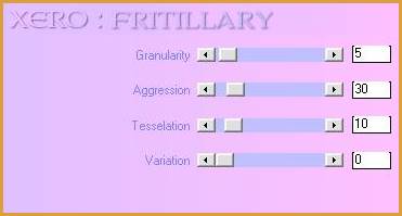 3 - Remplir avec le gradient 4 - Effets/Xero/Frittilary avec ces réglages :