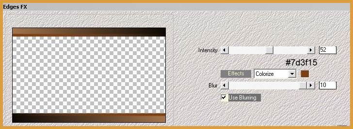 32 - Remplir la sélection supérieur 33 - Inverser la couleurs de la Palette de style et remplir la sélection inférieure 34 - Effets/Medhi/Edges-FX /couleur #7d3f15