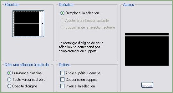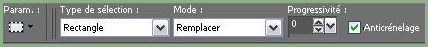38 - Calques/Fusionner les calques visibles 39 - Ouvrir le calque fermé et activer le calque supérieur 40 - Calques/NOUVEAU CALQUE41 - Activer l'outil sélection configuré ainsi: