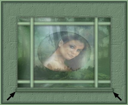 52 - Sélection/Désélectionner53 - Image/Ajouter des bordures : 10 pixels couleur #374b3b 54 - Image/Ajouter des bordures : 1 pixel couleur #e0eae455 - Ouvrir le tube Yoka-Vensterbank56 - Edition/Copier57 - Édition/Coller comme nouveau calque