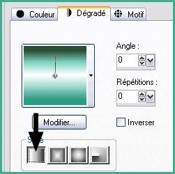 *** 1 - Ouvrir une image de 600 x 350 pixels 2 - Placer en avant-plan le dégradé Yoka_JdL_RFL1 Remplir de dégradé linéaire angle: 0°/Répétition: 0