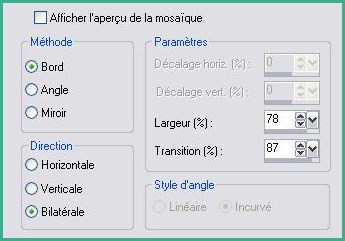 3 - Effets/Effets d'image/Mosaïque sans jointure avec les réglages suivants: