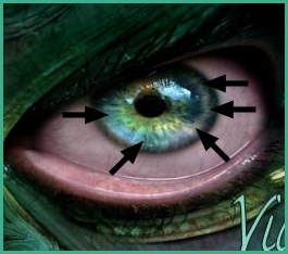 36 - Tamponner doucement autour de l'iris pour placer la couleur d'avant-plan