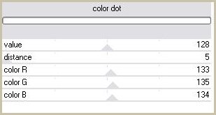 3 - Remplir l'image de ce dégradé 4 - Effets/pentacom/Color Dot avec ces réglages: 5 - Calques/NOUVEAU CALQUE 6 - Sélection/Sélectionner Tout 7 - Ouvrir l'image Raam.jpg8 - Edition/Copier 9 - Edition/Coller dans la sélection 10 - Effets/Funhouse/Polar Perversion avec ces réglages: