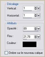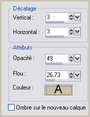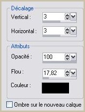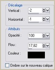 32 - Effets/Effets 3D/Ombre Portée réglages précédents 33 - Opacité à 92% 34 - Ouvrir le tube Yoka-Pharell03-12-0535 - Edition/Copier 36 - Edition/Coller comme nouveau calque Avec l'outil déplacer glisser ce tube vers le coin inférieur gauche
