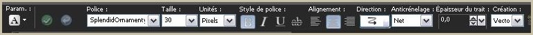 63 - Activer l'outil Texte/Police Splendid Ornements/Taille : 30/vectoriel 64 - avant-plan fermé/couleur arrière-plan #B3956F (C) 65 - Entrer votre nom