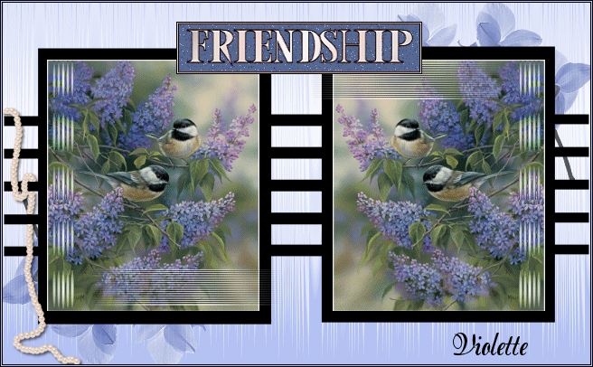 55 - Entrer votre nom 56 - Calques /Convertir en calque raster 57 - Placer comme sur l'image finale58 - Image/Ajouter des bordures : 1 pixel couleur #00000059 - Image/Ajouter des bordures : 1 pixel couleur # e0cac760 - Image/Ajouter des bordures : 1 pixel couleur #000000 61 - Placer votre signature 62 - Calques/Fusionner Tout 63 - Edition/Copier AnimationShop 64 - Ouvrir votre AnimationShop 65 - Edition/Coller comme nouvelle animation 66 - Calques/Dupliquer 67 - Ouvrir votre fichier "pspimage" enregistré 68 - Edition/sélectionner Tout 69 - Revenir sur votre tag70 - Sélection/Sélectionner Tout 71 - Edition/Propager le collage 72 - Edition/Coller dans l'image sélectionnée 73 -Affichage/Animation pour contrôler si l'animation vous convient 74 - Affichage/Animation pour la stopper 75 - Fichier/Assistant d'Optimisation 76 - Fichier/Enregistrer en fichier gif