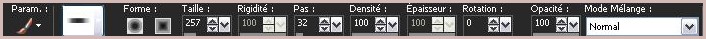 6 - Opacité à 65% 7 - Ouvrir le tube Yoka-Orchid-small 8 - Edition/Copier 9 - Édition/Coller comme nouveau calque Déplacer dans le coin inférieur gauche 10 - Opacité à 65% 11 - Calques/Dupliquer 12 - Image/Miroir 13 - Image/Renverser 14 - Activer l'outil de formes prédéfinies Configuré ainsi: