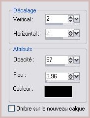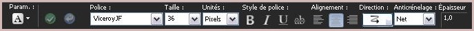 51 - Sélection/Désélectionner 52 - Effets/Effets 3D/Ombre Portée : 53 - Avant-plan fermé /couleur arrière-plan #000000 54 - Activer l'outil Texte/Police ViceroyJF/taille : 36/ vectoriel
