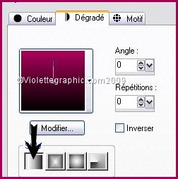 3 - Placer en avant-plan la couleur #000000 et en arrière-plan la couleur #ac0059 Configurer un dégradé radial angle: 0°/Répétition: 0