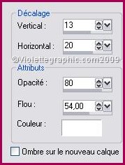 11 - Effets/Effets 3D/Ombre Portée : 13/20/80/54 couleur #ffffff