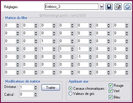 Image/redimensionner à 80% /décocher " tous les calques"20 - Effets/Filtre Personnalisé : Emboss 3