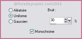 4 - Réglages /Ajouter du bruit /Ajouter du bruit : monochrome/Uniforme/30