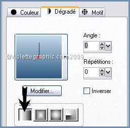2 - Placer en avant-plan la couleur #315a84 et en arrière-plan la couleur #c5dbeb Configurer un dégradé linéaire angle: 0°/Répétition: 0/Inverser coché