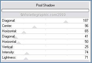 13 - ACtiver le calque 1 Effets/Filtre Greg`s Factory Output/Pool Shadow avec ces réglages :