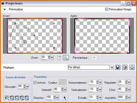 18 - Effets/Effets d'éclairage /Projecteurs : réglages par défaut