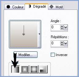 2 - Placer en avant-plan la couleur #bdb3aa et en arrière-plan la couleur # f7f7f7Configurer un dégradé linéaire angle: 0°/Répétition: 0