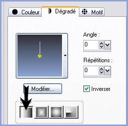 9 - Placer en avant-plan la couleur #2f3036 et en arrière-plan la couleur # 8da4d6Configurer un dégradé linéaire angle: 0°/Répétition: 0