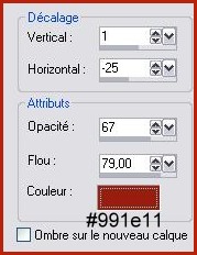 5 - Effets/Effets 3D/Ombre Portée : couleur #991e11