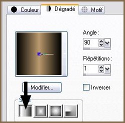 10 - Placer en avant-plan la couleur #000000 et en arrière-plan la couleur #ba9a6dConfigurer un dégradé linéaire angle: 90°/Répétition: 1