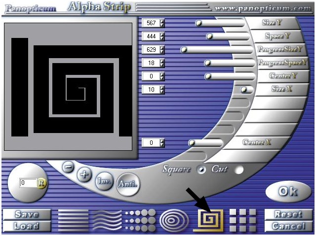 11 - Activer le calque 1 Effets/ Panopticum/ PAN Alpha Strip réglages suivants :