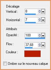 11 - Effets/Effets 3D/Ombre Portée : 8/7/100/37,68 couleur #b91e00