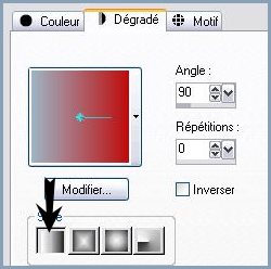 2 - Placer en avant-plan la couleur # 9eb2c3 et en arrière-plan la couleur #be0c0dConfigurer un dégradé linéaire angle: 90°/Répétition: 0