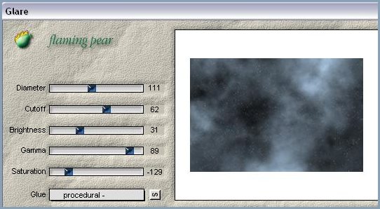 6 - Effets/Filtre Flaming Pear / Glare réglages ci-dessous:
