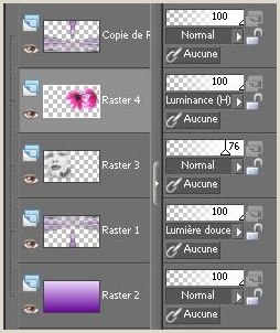 12 - Activer le calque 1 Ouvrir le tube mc-x182.pspimageEdition/Copier/Édition/Coller comme nouveau calque Placer comme sur l'image finale Opacité à 76%