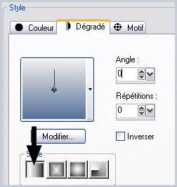 *** 1 - Ouvrir les tubes , les dupliquer et fermer les originaux Placer en avant-plan la couleur # 56719c et en arrière-plan la couleur #f2eeedConfigurer un dégradé linéaire angle: 0°/Répétition: 0/Inverser coché